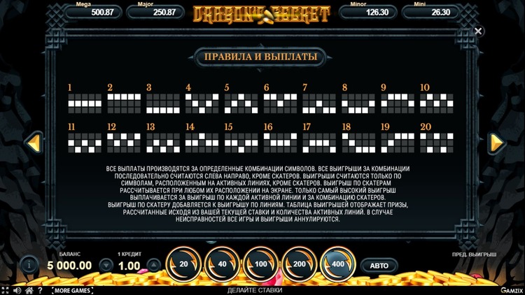 | Монета с иероглифами (Wild) | 200 | 1 000 | 5 000 | 20 000 |