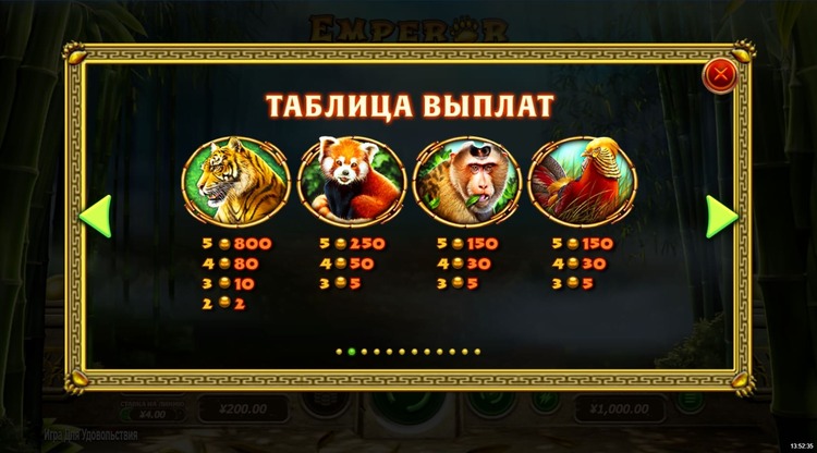 | Фазан, Обезьяна | - | 5 | 30 | 150 |