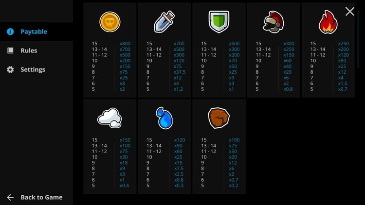 | Меч | 1,2 | 4 | 12 | 37,5 | 75 | 120 | 300 | 500 | 700 |