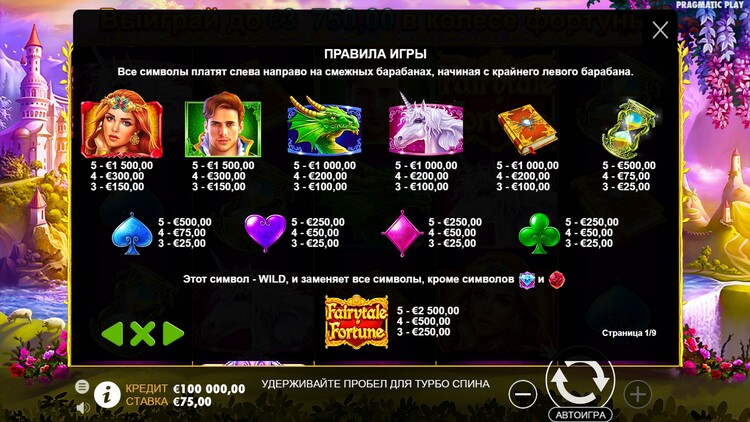 | Логотип слота (Wild) | 250 | 500 | 2 500 |