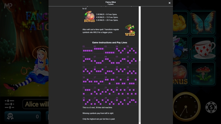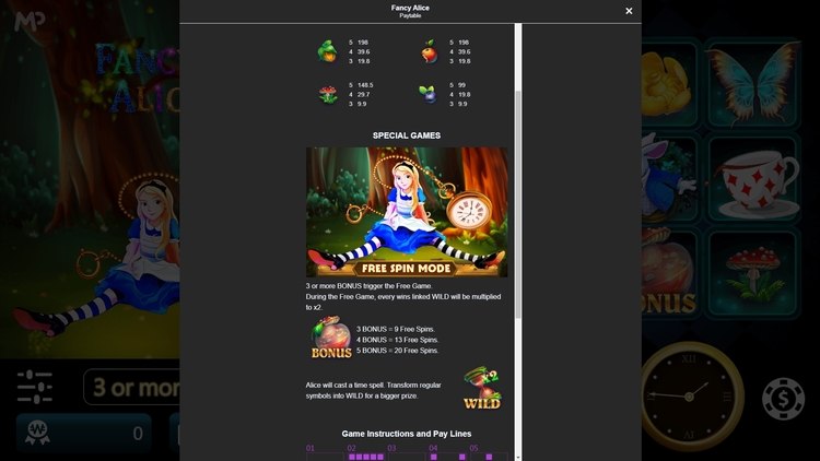 Таблица выплат Fancy Alice