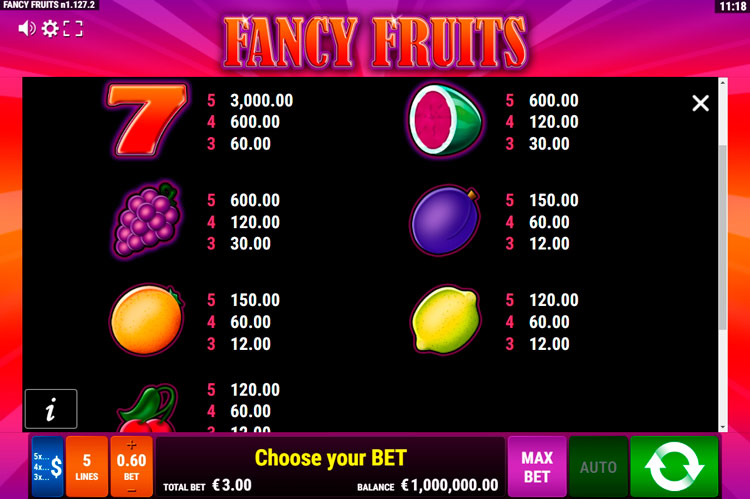 Таблица выплат Fancy Fruits