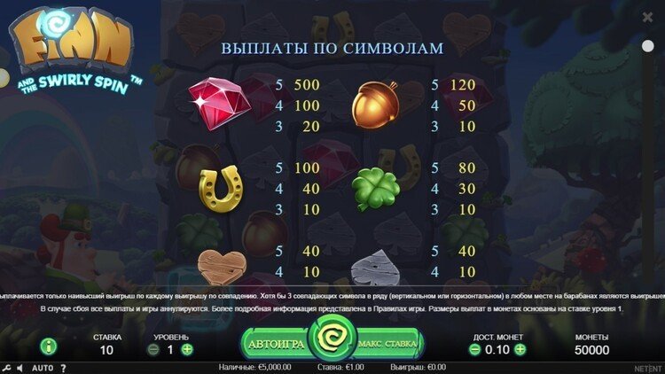 Таблица выплат Finn and the Swirly Spin