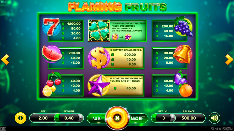 Таблица выплат Flaming Fruits