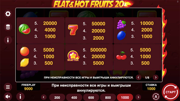 | Звезда (Scatter) | 5000 | 20 000 | 500 000 |
