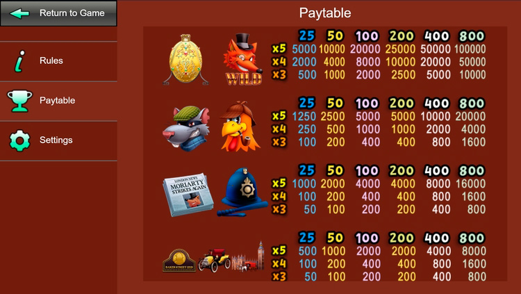| Яйцо, Лис (Wild) | 500-10 000 | 2 000-50 000 | 5 000-100 000 |