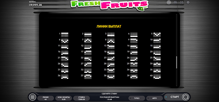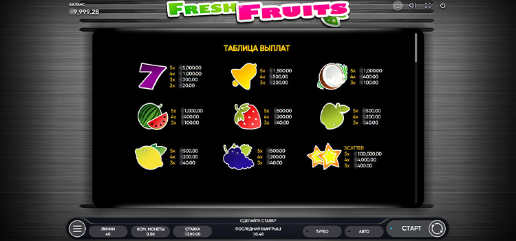 Таблица выплат Fresh Fruits