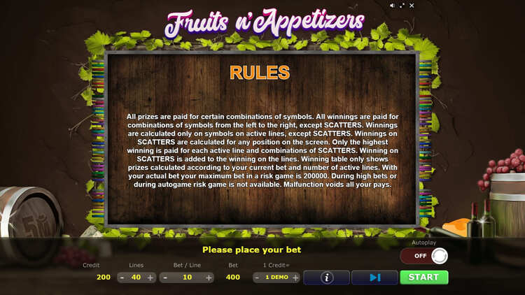Таблица выплат Fruits n’Appetizers