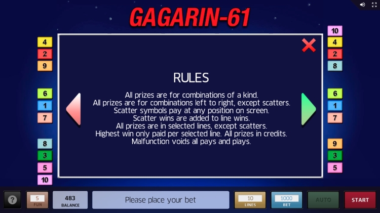 Таблица выплат Gagarin — 61
