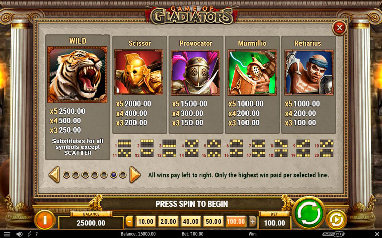 | Retiarius, Murmillio | 100 | 200 | 1 000 |