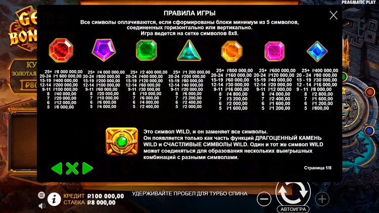 Таблица выплат Gems Bonanza