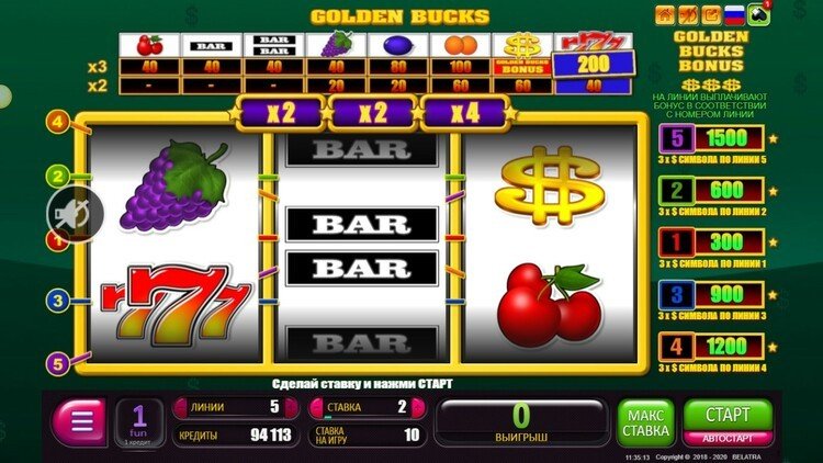 Таблица выплат Golden Bucks
