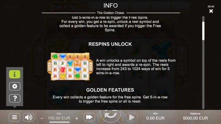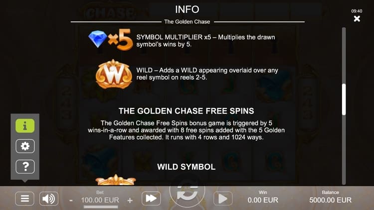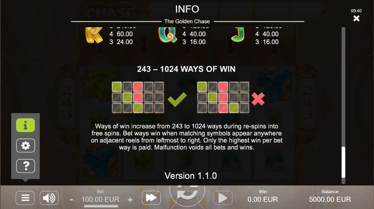 Таблица выплат The Golden Chase