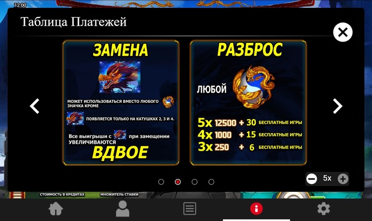 Таблица выплат Golden Dragon