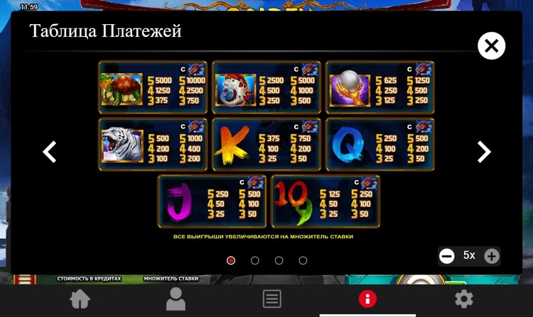 | Белый тигр | 100/200 | 200/400 | 500/1 000 |