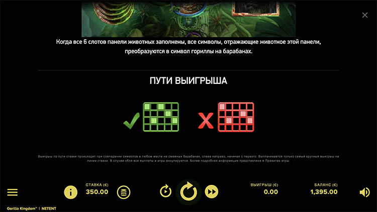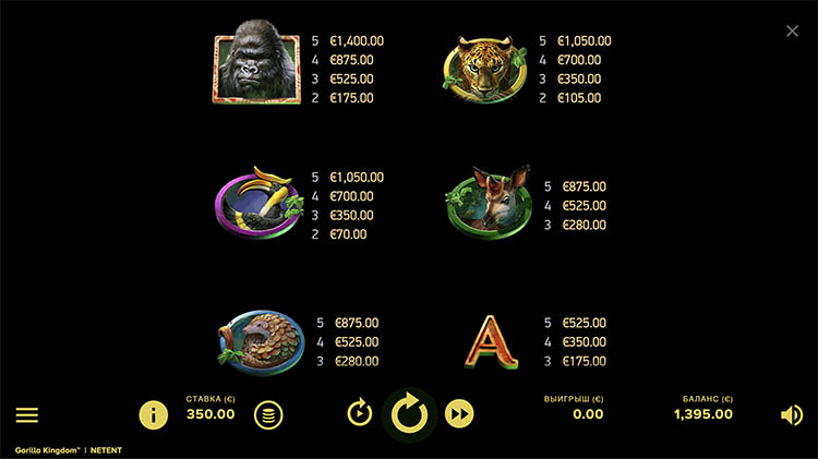 Таблица выплат Gorilla Kingdom