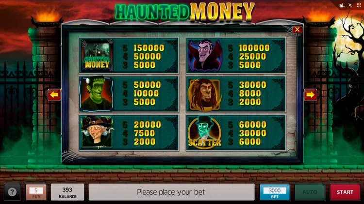 Таблица выплат Haunted Money