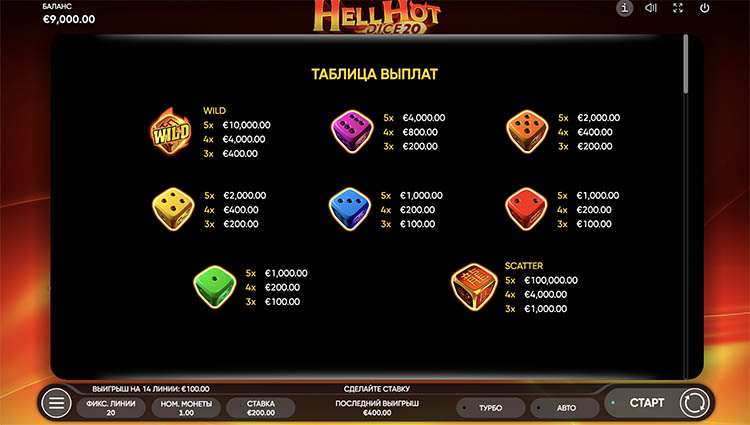| Огненный кубик (Wild) | 400 | 4000 | 10 000 |