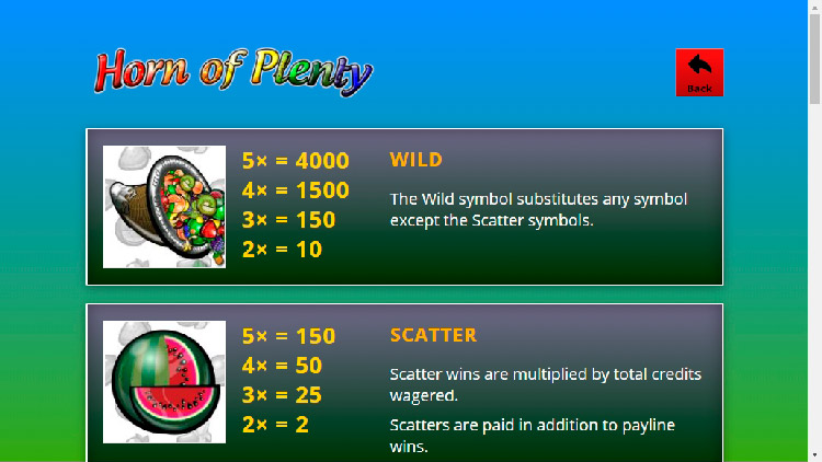 | Рог с фруктами (Wild) | 10 | 150 | 1 500 | 4 000 |