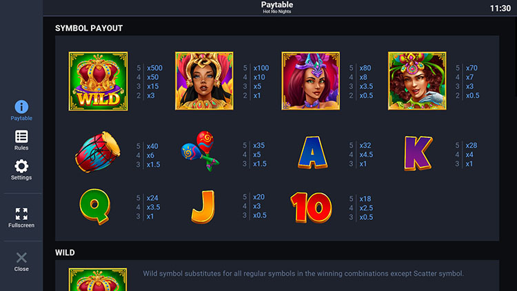 | Корона (Wild) | 3 | 15 | 50 | 500 |