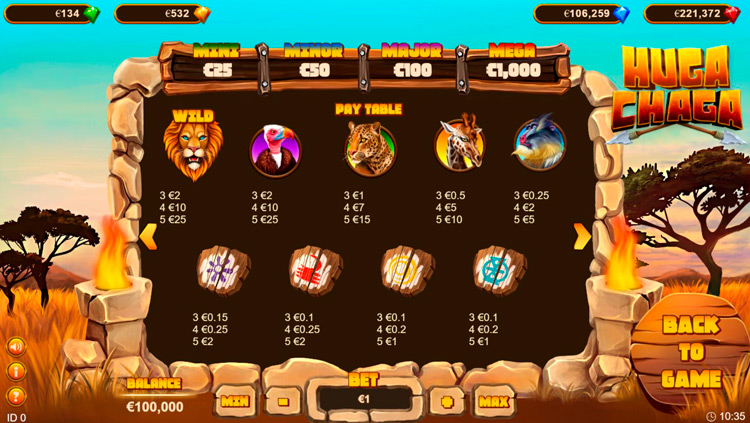 | Птица, Лев (Wild) | 2 | 10 | 25 |