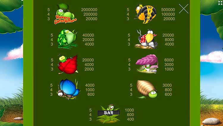 | Зеленая гусеница с названием слота | 20 000 | 200 000 | 2 000 000 |