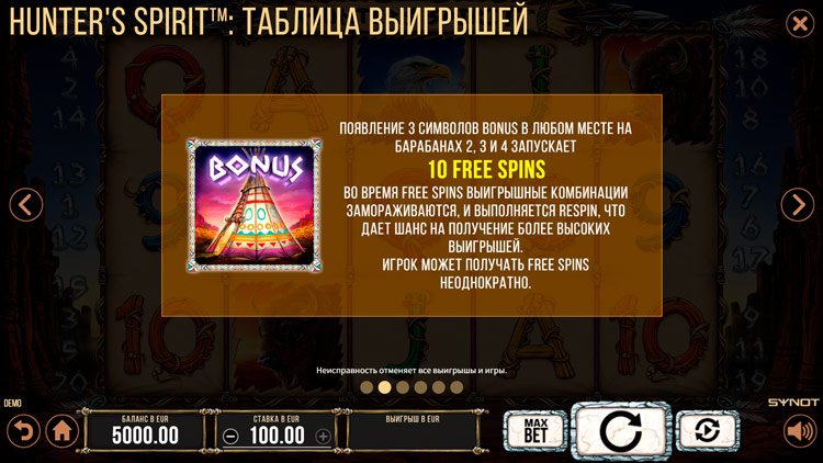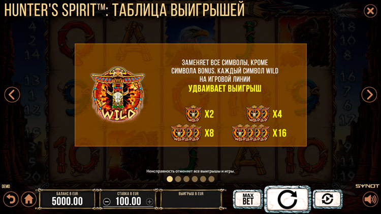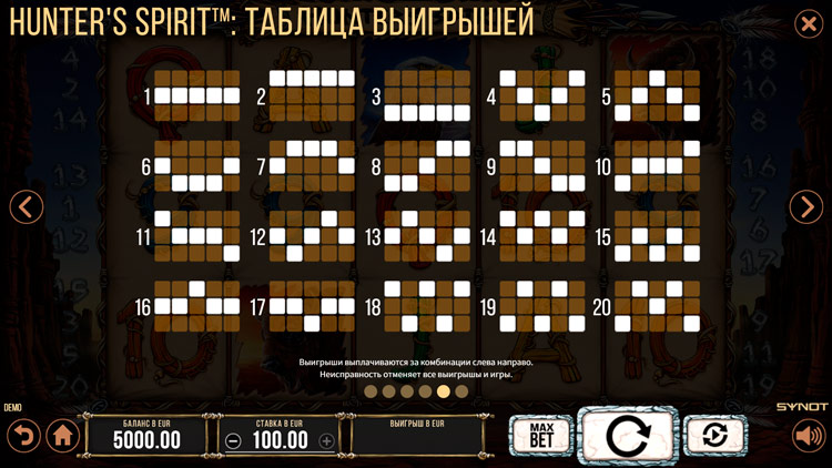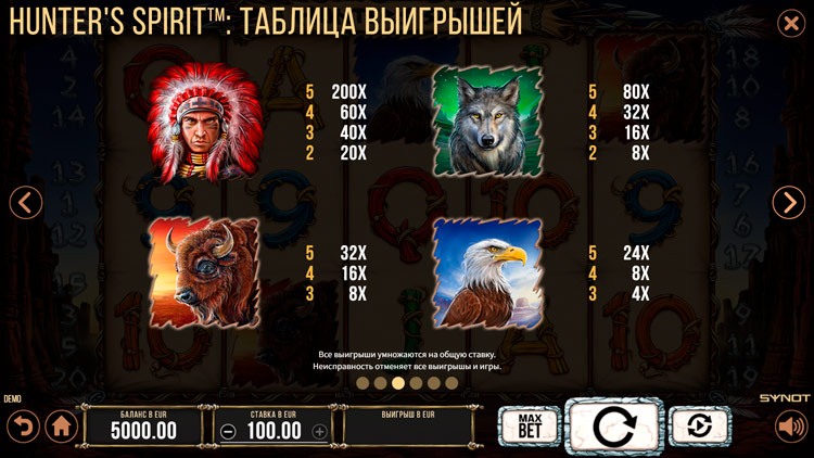 Таблица выплат Hunter’s Spirit