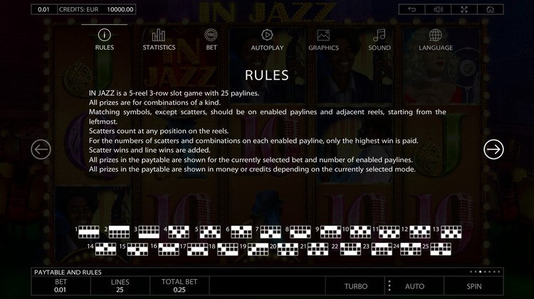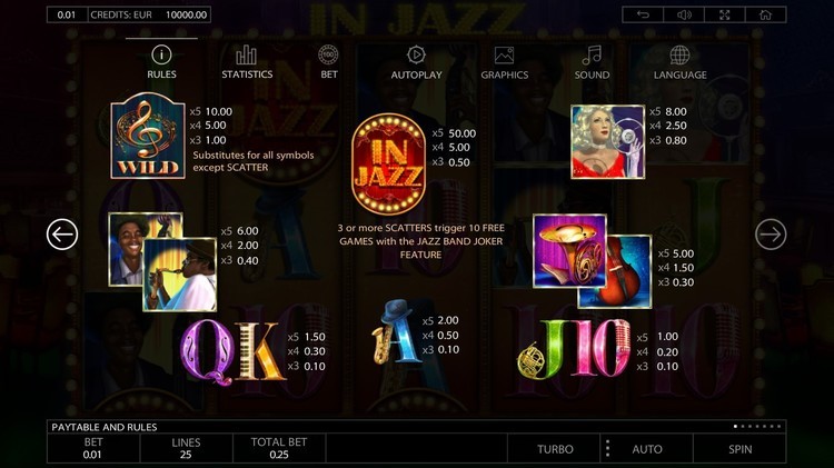 Таблица выплат In Jazz