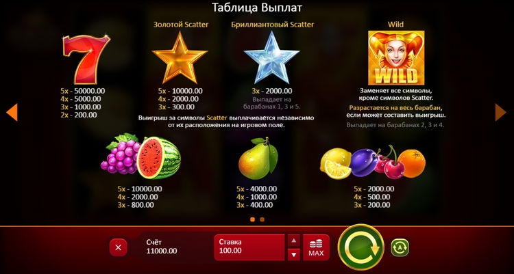 | Золотая звезда (Scatter) | - | 300 | 2 000 | 10 000 |