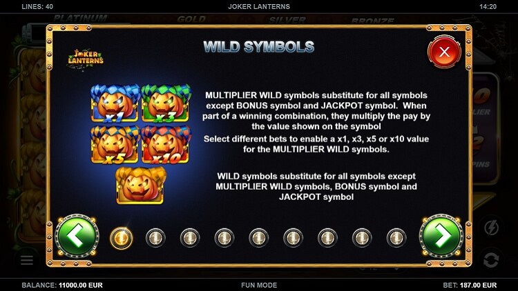 Таблица выплат Joker Lanterns