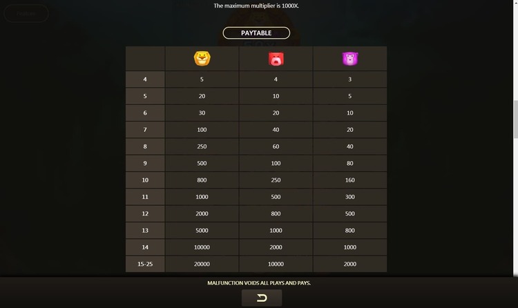 | Медведь | 4 | 10 | 40 | 60 | 250 | 500 | 1000 | 2000 | 10 000 |