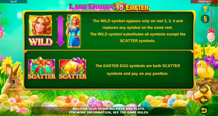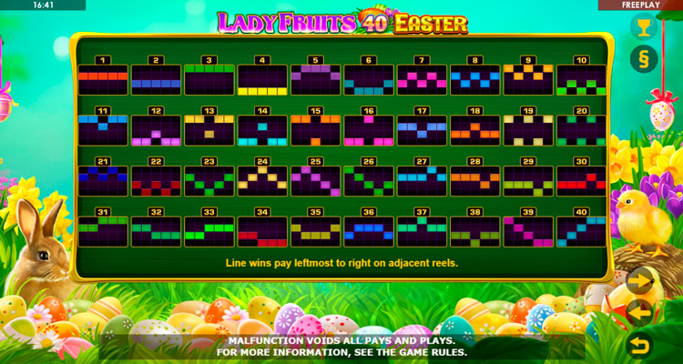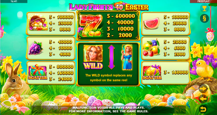 Таблица выплат Lady Fruits 40 Easter