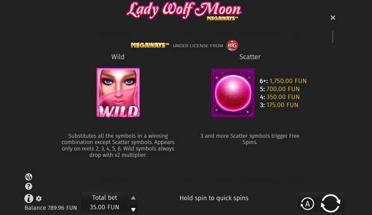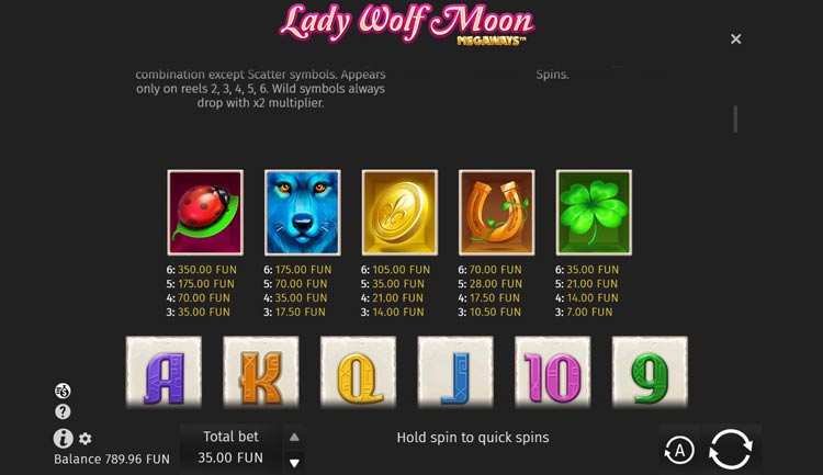 Таблица выплат Lady Wolf Moon Megaways