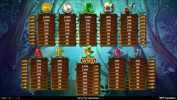 | Лепрекон (Wild) | 150 | 200 | 250 | 300 | 350 | 400 | 500 | 1000 | 2500 |