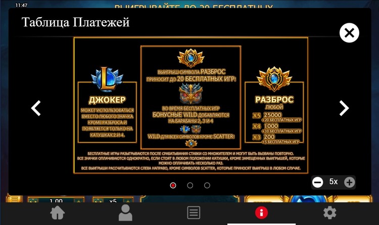 Таблица выплат Legendary
