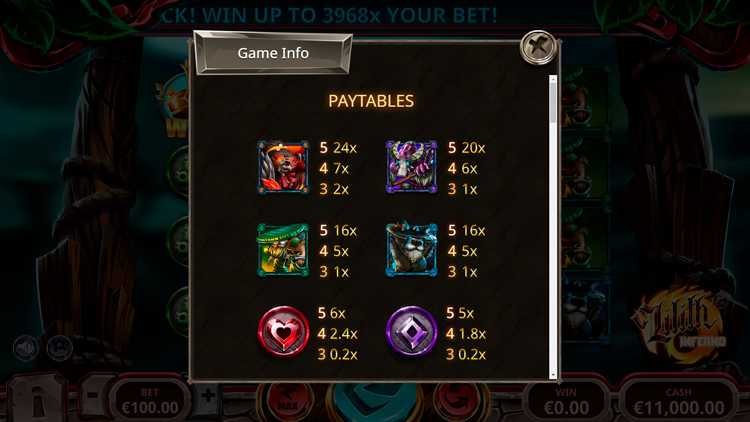 Таблица выплат Lilith’s Inferno
