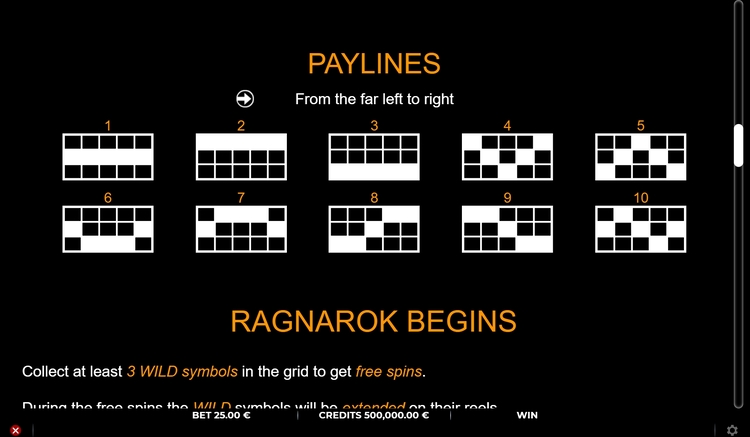 Таблица выплат Lords Of Asgard