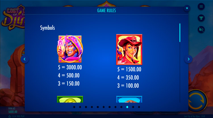 Таблица выплат Lost City of the Djinn