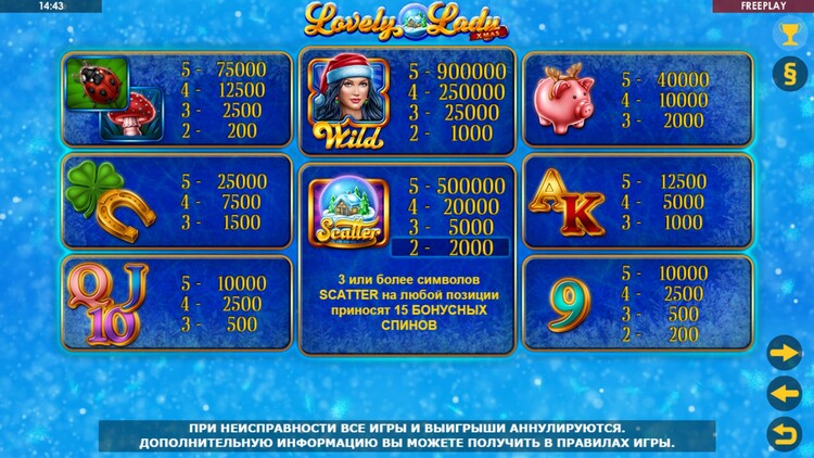 | Снегурочка (Wild) | 1 000 | 25 000 | 250 00 | 900 000 |