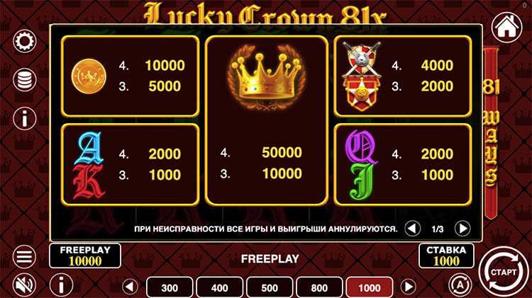 Таблица выплат Lucky Crown 81x