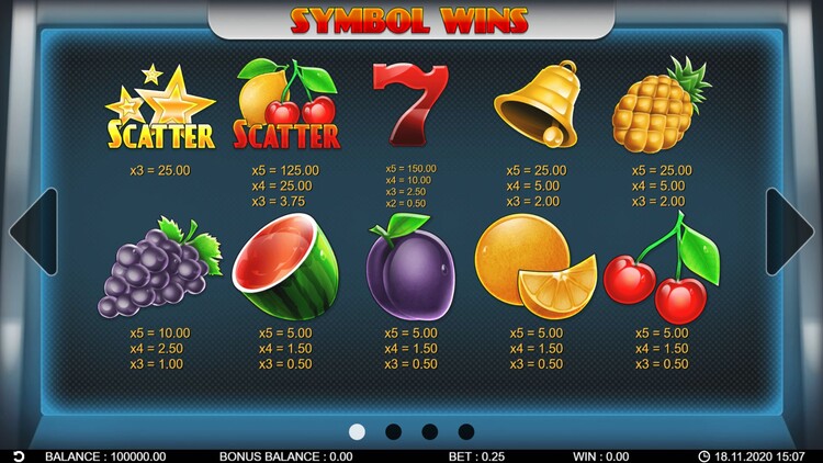 | Вишни и лимон (Scatter) | - | 3.75 | 25 | 125 |