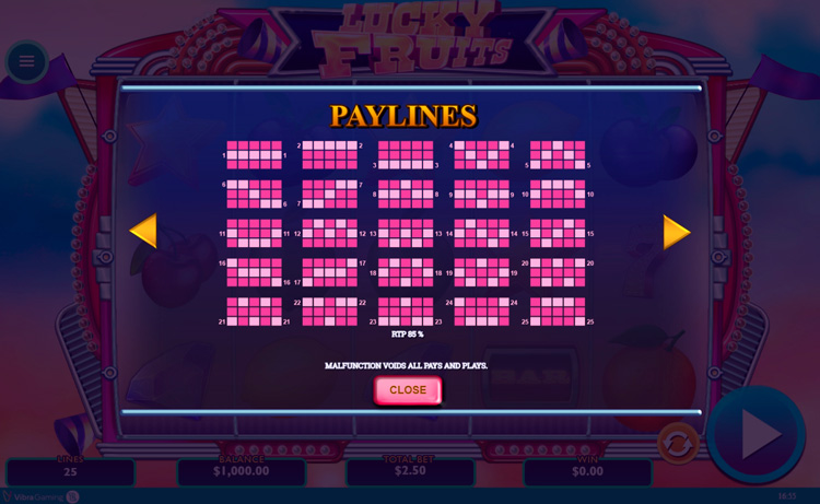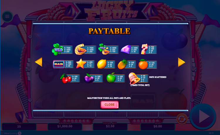 Таблица выплат Lucky Fruits