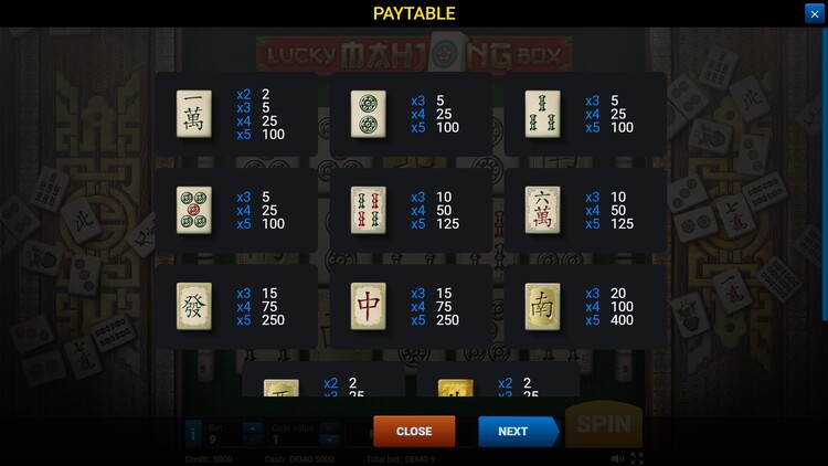 Таблица выплат Lucky Mahjong Box