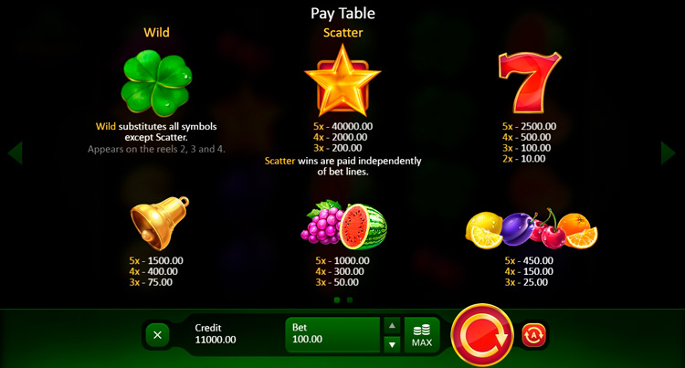 | Звезда (Scatter) | - | 200 | 2 000 | 40 000 |