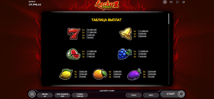 | Звезда (Scatter) | - | 400 | 4000 | 100 000 |