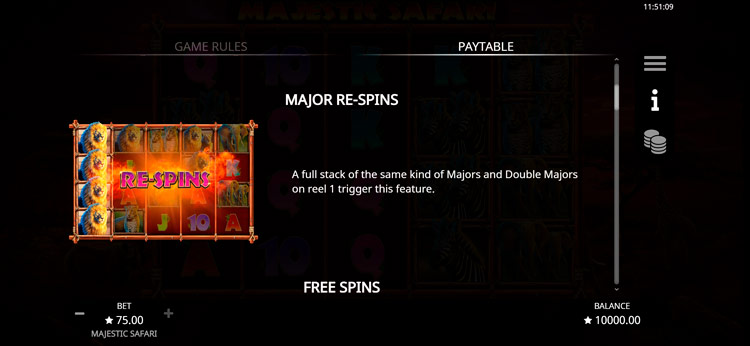 Таблица выплат Majestic Safari