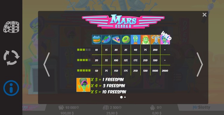 Таблица выплат Mars Dinner