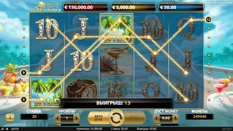 | Пальмы (Wild) | 50 | 500 | 5 000 |