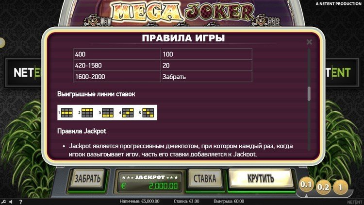 | Ставка на игру 200 | Джокер | 100-2000 |