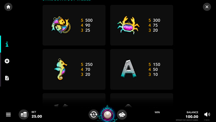 | Жемчуг (Scatter) | 125 | 250 | 500 |